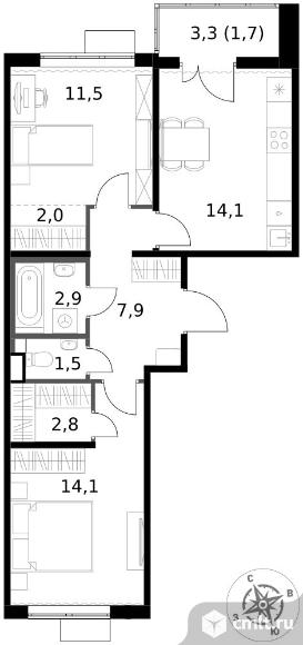 Перейти к актуальным объявлениям рубрики Квартиры. 2-комнатная квартира 58,5 кв.м