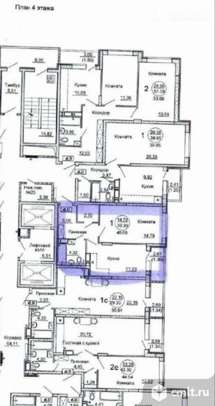 1-комнатная квартира 40,69 кв.м