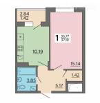 1-комнатная квартира 30,64 кв.м
