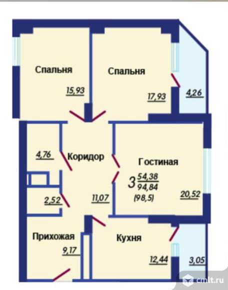 3-комнатная квартира 94,3 кв.м