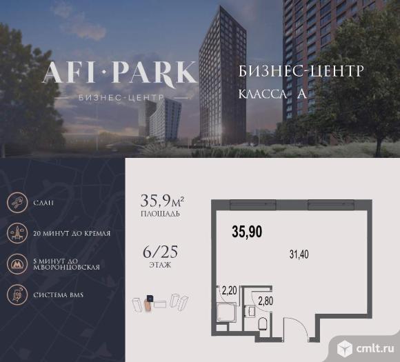 Продается просторное коммерческое помещение общей площадью 35,9 на 6 этаже в готовом бизнес-центре AFI Park. Строительство комплекса завершено.