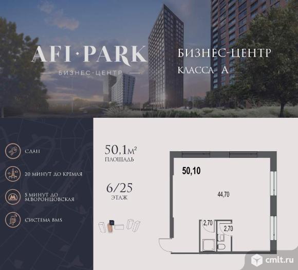 Продается просторное коммерческое помещение общей площадью 50,1 на 6 этаже в готовом бизнес-центре AFI Park. Строительство комплекса завершено.