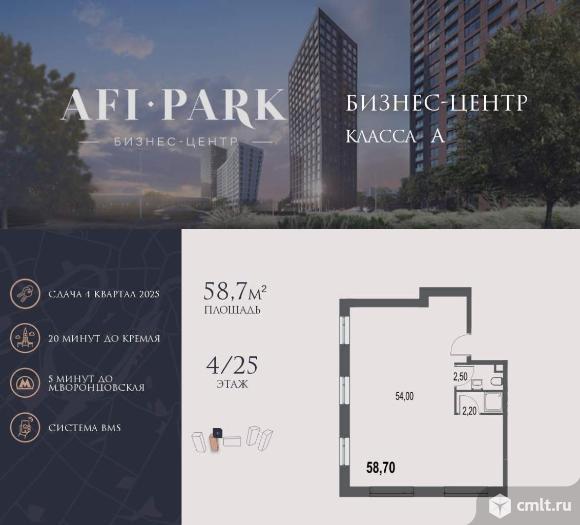 Продается просторное коммерческое помещение общей площадью 58,7 м2 на 4 этаже в бизнес-центре AFI Park.