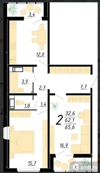 2-комнатная квартира 65,6 кв.м