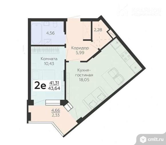 1-комнатная квартира 43,64 кв.м