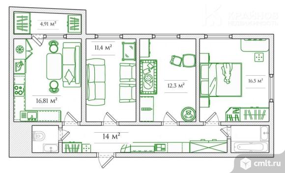 3-комнатная квартира 76,3 кв.м
