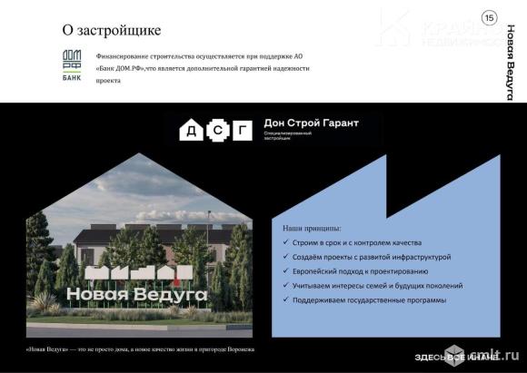подходит под ипотеку!!! закрытый коттеджный поселок новая ведуга, расположен в семилукском районе, с.гудовка. вся территория поселка под круглосуточной охраной. своя управляющая компания следит за чистой улиц, осуществляет полив и стрижку газонов на придомовой территории. у вас есть уникальная возможность прочувствовать весь комфорт и уют загородной жизни, не утрачивая возможности коммуникации с городом и его инфраструктурой . для вас продумано все! свой детский сад запроектирован на территории кп, пруд с пляжем, торговый центр, локальные станции для заряда ваших электрокаров, большая парковая и пик-ник зона , скверы , велодорожка по периметру всего поселка! общая площадь кп 45га! застройка осуществляется в квартальном формате, продумана до мелочей сеть улиц и придомовые территории с личными парковочными местами включенными в стоимость вашего таунхауса. низкая цена за вход в ваше спокойствие и комфорт . аналогов нет! недорогое содержание таунхауса, оплата по счетчикам с сельским тарифом ! на весь жк своя скважина с новой и технологичной системой очистки воды . весь коттеджный поселок - это большая природная зона с чистым воздухом , городской смог и запах выхлопа от авто вас больше не будут беспокоить. я предлагаю вам таунхаус формата евро 3, площадью 109м2, участком 3.1 сотки, тип 1, ( яблоневый квартал) 1-й этаж : вместительная кухня-гостинная 2-й этаж : две спальни, санузел и балкон высокие потолки 2.7м. в стоимость уже включены два парковочных места, ограждения вашего участка забором и сам участок!!! вам не нужно искать строительную бригаду и бояться за качество постройки или следить за ним ! наш кп прошел независимые экспертизы и получил одобрение и рекомендации к приобретению ! таунхаус сдается в трех разных видах отделки по вашему желанию базовая отделка ( она уже входит в стоимость), предчистовая отделка - 15000р за м2 и чистовая отделка стоимостью 25000р за м2. обратите внимание на информацию в фото формате ! я гарантирую вам полное сопровождение от момента фиксации объекта и до момента заселения ! помощь в подготовке документов для получения ипотеки! возможна презентация , консультация , показ и экскурсии ! с уважением , александр! Застройщик: ООО СЗ "Дон Стройгарант". Проектная декларация: наш.дом.рф. 02.01.2026 10:22