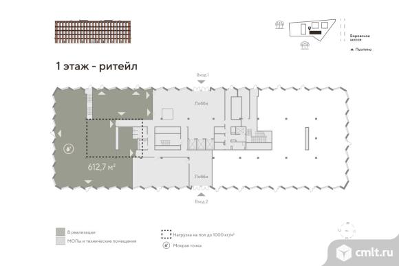 Новая Москва. 10 мин пешком м. Пыхтино Комиссия брокерам - 3% Предлагается к продаже помещение 1 435 м2 с повышенной нагрузкой на пол до 1000 кг/м2 Помещение 1 435 м2 состоит из двух блоков: 1этаж. Помещение 612,7 м2 с повышенной нагрузкой на пол до 1000 кг/м2. - Высота потолков 5,3 м; - Отдельные входы с улицы и лобби (9 независимых входов); - Витринное остекление по фасаду; - Наличие мокрых точек, технологических вытяжек; - Электрическая мощность 103,79 кВт; - Нагрузка на пол до 1 000 кг/м; - Наличие мест для размещения рекламных вывесок; Преимущества помещения: - Возможность организации мастерских, торговых залов с тяжелыми товарами, кофеин (неполного цикла), размещения производственных станков; - Большой запас прочности и безопасности при непредвиденных нагрузках; - Универсальность и арендная привлекательность. Больший охват направлений бизнеса. - Меньше вибрации, что важно для точного оборудования. 2 этаж. Помещение 829,7 м2 для размещения офиса компании - Высота потолков 3,8 м; - Панорамное остекление; - Вид на лес; - Шаг колонн 8,1 м * 8,4 м; - Отделка shell and core Бизнес-парк Переделкино — это современный бизнес-парк класса A. Состоит из четырех пятиэтажных зданий с панорамным остеклением, расположенный на территории Новой Москвы в окружении леса и вблизи основных транспортных автомагистралей (Боровское ш, Киевское ш, Минское ш, Можайское ш) Транспортная доступность: - 10 минут пешком от м. Пыхтино - 9 км от МКАД - 35 минут до центра Москвы Инфраструктура: - Благоустроенная территория с прилегающей лесополосой - Прогулочный бульвар с кафе и ресторанами - Природный коворкинг в окружении леса - На первых этажах офисных зданий просторные лобби с комфортной зоной ожидания, супермаркет, торговые помещения, отделения банков и сервисных служб, фитнес-студия - Охраняемый наземный паркинг - Зарядные станции для электромобилей Ближайшее окружение: - Парк Рассказовка - Горнолыжный склон Ново-Переделкино - Спорткомплекс Арктика - Дом творчества писателей Переделкино - Внуково Аутлет Вилладж - Рестораны Сыроварня, Кофемания, Библиотека Развитие Новой Москвы, растущая дорожная сеть, строящиеся жилые комплексы все это говорит о блестящих перспективах территории. У вас есть возможность получить высочайший уровень комфорта и сервиса. Более подробную информацию можно уточнить у менеджера по телефону. Все представленные проектные решения являются предварительными. [#7748994#]