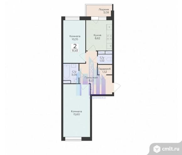2-комнатная квартира 51,43 кв.м