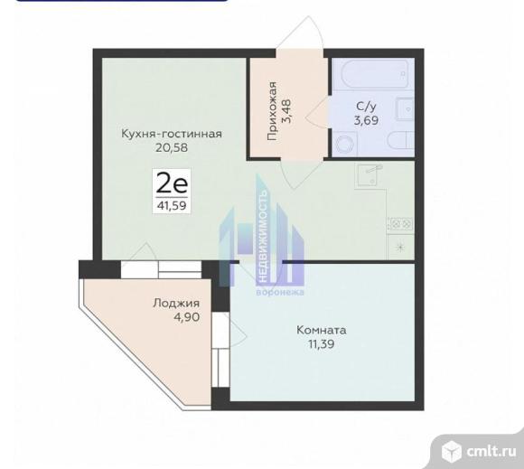 2-комнатная квартира 41,59 кв.м
