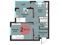 1-комнатная квартира 45,8 кв.м