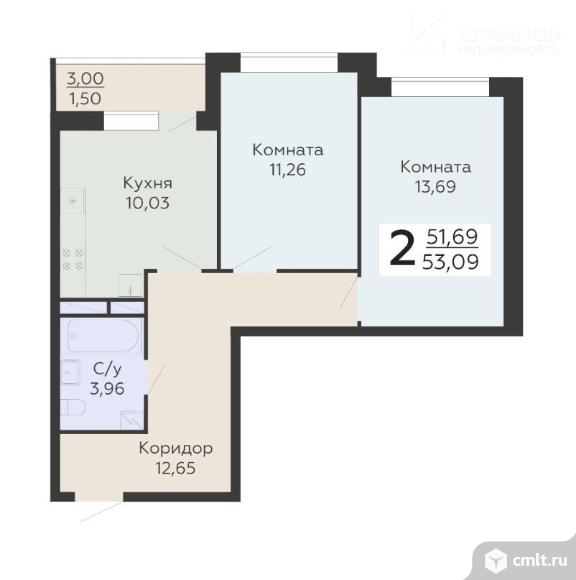 2-комнатная квартира 53,09 кв.м