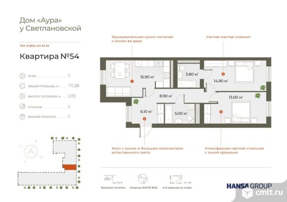 Продается 2-комн. квартира с европланировкой, площадью 70,1 кв. м в 5 мин. транспортом от м. Пионерская.