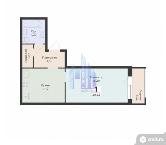 1-комнатная квартира 39,53 кв.м