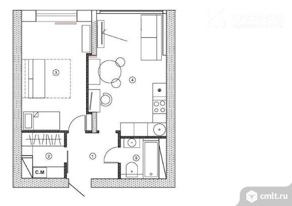 1-комнатная квартира 37 кв.м