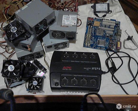 Продаю материнская плата для пк с процессором и памятью 2 гб -1 шт.блок питания пк-300-500 вт-5 шт.вентиляторы для пк 4 шт с кулером 3 без.блок питания 12 вт-5.0а -1шт.блок бесперебойного питания 220вт.цена за всё 2000 тыс.всё на фото.