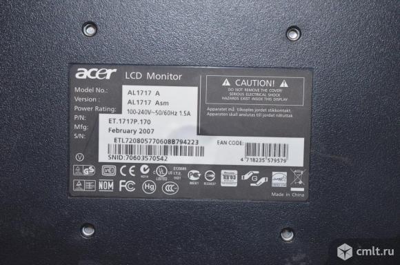 Монитор Acer AL1717 A(17 дюймов) в отличном состоянии на подставке, повреждений, трещин нет. Комплектность: подставка, сетевой провод.