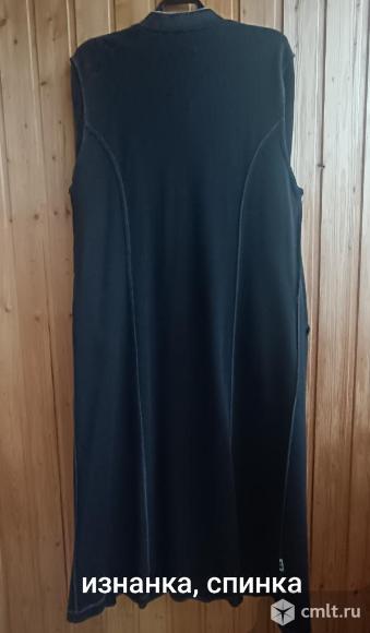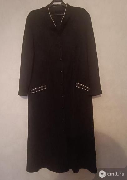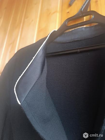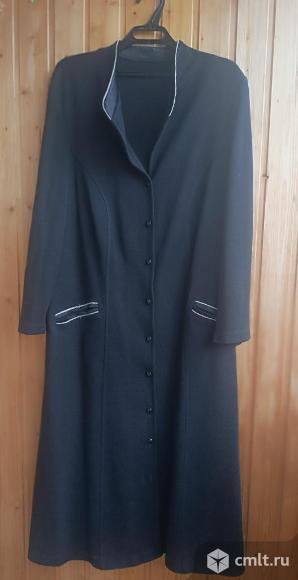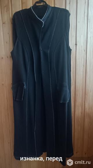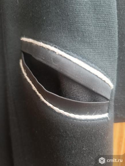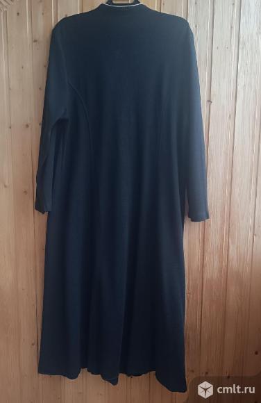 Продаётся женский кардиган чёрного цвета из шерсти, трикотажное полотно, размер 52-54, производство Латвия. Состояние хорошее, без дефектов. Длина изделия 128 см, длина рукава 65 см, полуобхват груди 56 см, от плеча до плеча 55 см,, длина плеча 15 см, полуобхват проймы 32 см, 2 кармана. Рельефы придают стройность силуэту, хорошо садится по фигуре. Кардиган выполнен с аккуратной отделкой на карманах и горловине. Нет одной пуговицы.