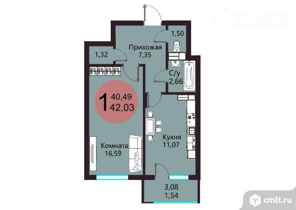 1-комнатная квартира 42,03 кв.м