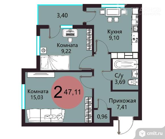 2-комнатная квартира 47,1 кв.м