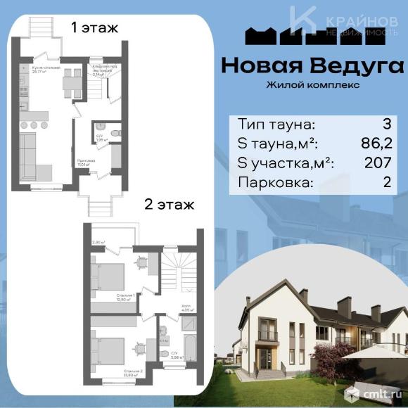 Таунхаус в коттеджном посёлке «Новая ведуга» Маcштабный проект состоящий из 6 кварталов, всего в 9 км. от Воронежа!! На территории комплекса предусмотрено все необходимое для комфортного проживания: дет.сад, торговый центр, спортивные площадки, пруд !!! Школа находится в 8 минутах езды на автомобиле или автобусе… Остановка транспорта-2 минуты от КПП. Вы получаете собственный участок 207м. Два парковочных места!!! Стоимость объекта, указанна в черновой отделке, но есть возможность заказать отделку специально под вас! Подходит под ипотеку!!! Звоните или пишите, подробно расскажу вам про проект, а вы зададите все интересующие Вас вопросы. Новая Ведуга - новый стиль жизни!!! Застройщик: ООО СЗ "Дон Стройгарант". Проектная декларация: наш.дом.рф. 02.01.2026 10:22