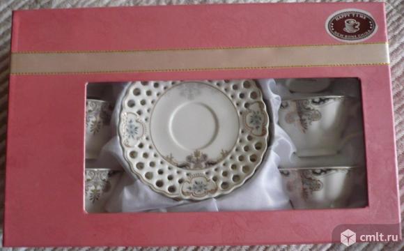 Кофейный сервиз Happy Time, New Bone China, 6 персон, чашка и блюдце, Китай, костяной фарфор, новый.