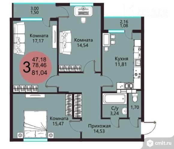 3-комнатная квартира 81,04 кв.м
