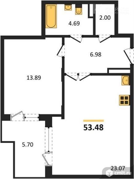 2-комнатная квартира 53,5 кв.м
