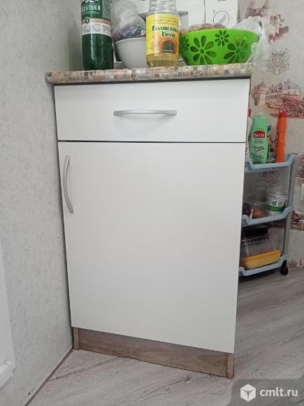 Верхние шкафы в нормальном состоянии, с сушкой. Нижние более изношены, трещина на пластике вдоль всей столешницы. Вся фурнитура рабочая. Размеры 50/80/50см. Тумба которая должна быть с права от плиты на последнем фото.