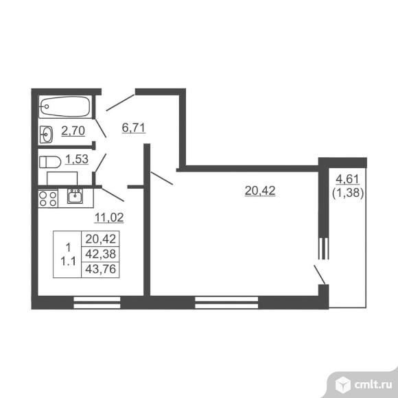 Продам 1-комн. квартиру 43.76 кв.м.