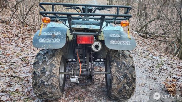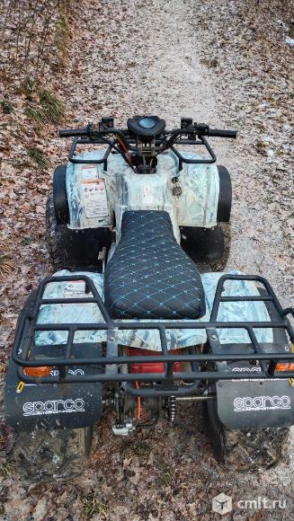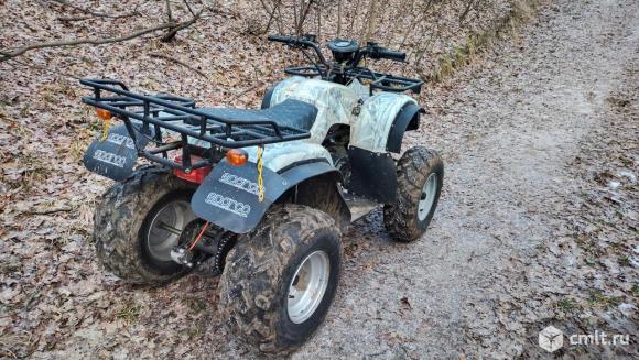 Квадроцикл на полном ходу. Полный комплект документов. Подходит для подростка или взрослого.Двигатель 4-х тактный 150 см?.Заводится с электростартера и с кик-стартера. Колеса 10 дюймов, тормоза дисковые Есть свет ближний и дальний, стоп сигнал,поворотник ,сигнал.Спидометр не работает, но показывает индикацию поворотников,дальнего света,нейтрали и заднего хода.Летом подкидывал поршневые кольца, масло в двигателе менял в начале осени,в редукторе весной.Состояние на фото.