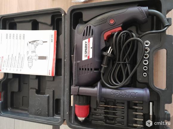 Продается ударная дрель Sparky BUR 131E. В комплекте кейс, набор бит, головок, сверла (все, что на фото). В пользовании не была.