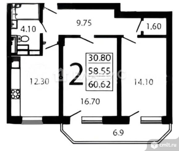 2-комнатная квартира 60,62 кв.м