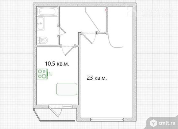 1-комнатная квартира 43,6 кв.м