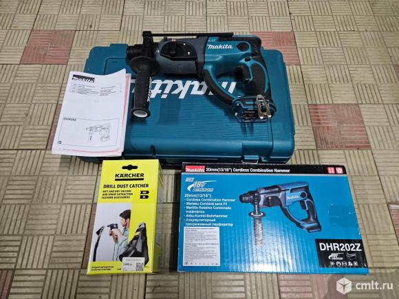Аккумуляторный перфоратор Makita DHR202z LXT 18В (комплектация Z-без акб) в кейсе+система пылеудаления Karcher 2.863-234.0 (новая). Подходит к любому строительному пылесосу Karcher WD2-WD5/SE. Присасывается к стене/потолку.