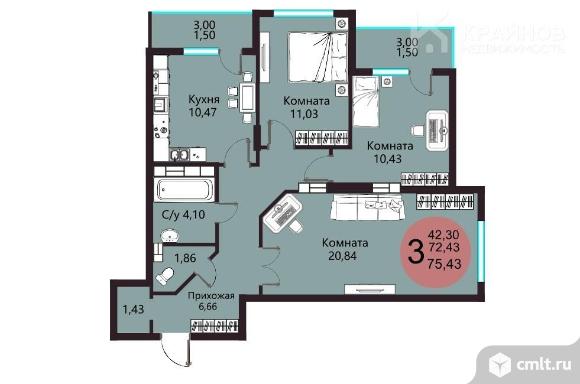 3-комнатная квартира 75,43 кв.м