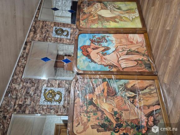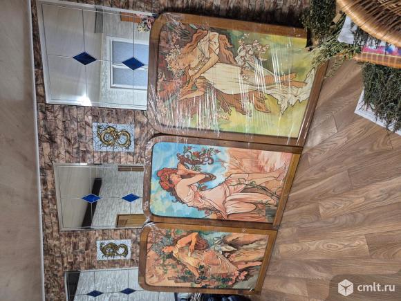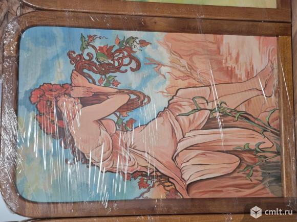 Репродукция маслянными крамками на холсте цикла картин Времена года Альфонса Мухи 1896г 3 полотна в дубовой оправе.