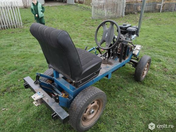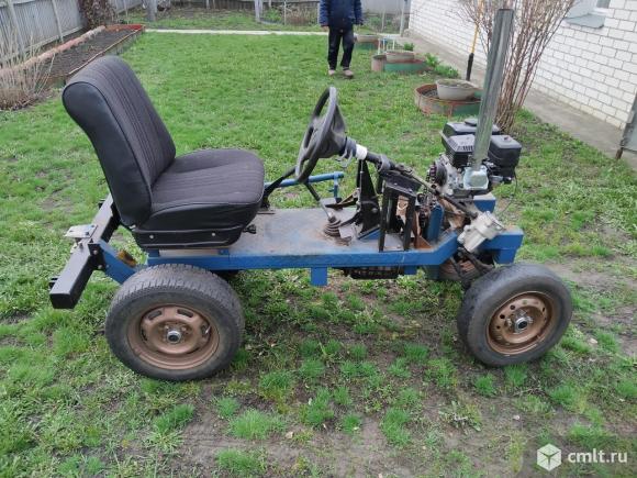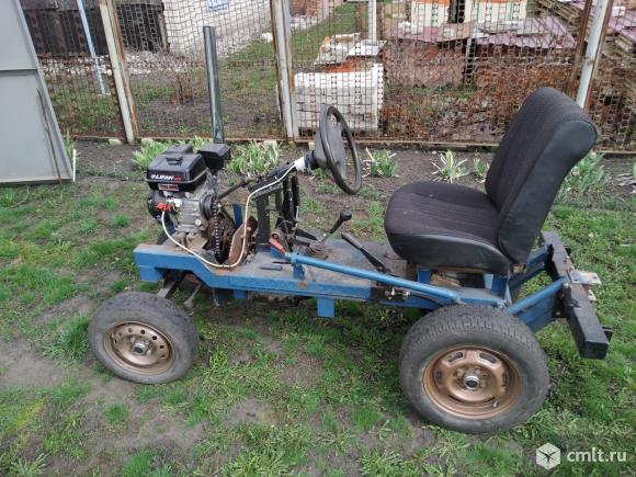 Самодельный мини-трактор.(ширина сзади 86см, спереди 82см, длина -200см, высота -130см.) Использовался очень мало. двигатель новый - Lifan 168 - f 2 (6,5 л.с) . вариатор от бурана. переключения скоростей от классики (есть задний ход). Также есть к нему грабли(182см), плуг и шипованные колёса,