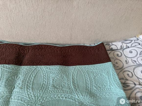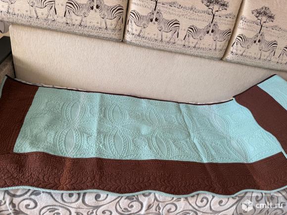 Покрывало на кресло цвет морской волны, длина 2, 34м ширина 0,73 м. С лицевой стороны есть 2 полоски выцветшие от солнца по сгибу, видно на снимке, с обратной стороны цвет ровный. Хлопок. Отличный вариант для дачи.