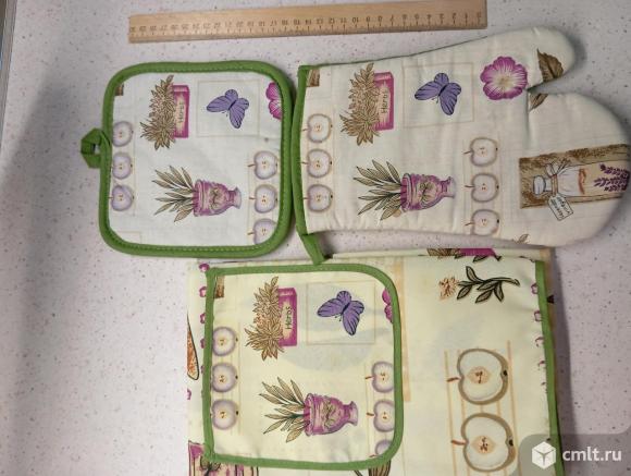 1) полотенце 40*50 см + прихватка 17*17 см (красный) 2)фартук 50*75см, рукавица 26*15 см + прихватка 17*17 см (зеленый) по 300 руб. возможна доставка, торг