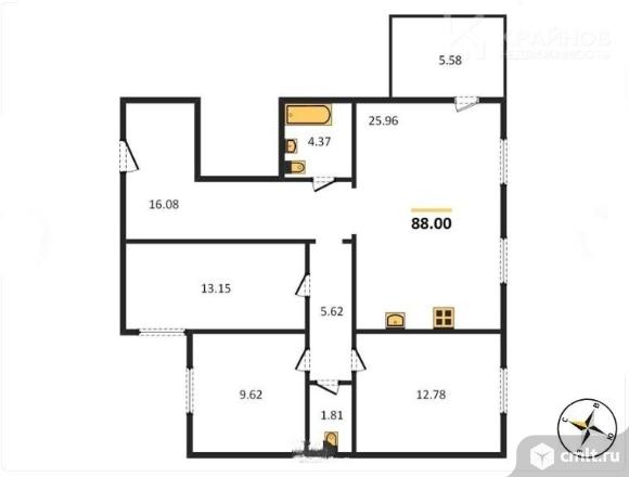 3-комнатная квартира 88 кв.м