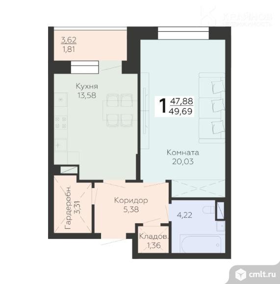 1-комнатная квартира 49,69 кв.м