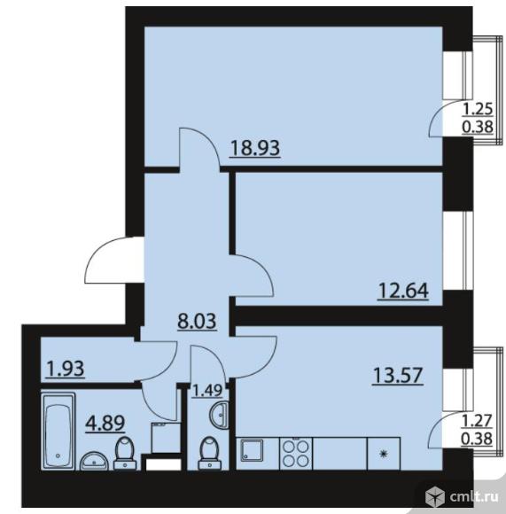 2-комнатная квартира 62,24 кв.м