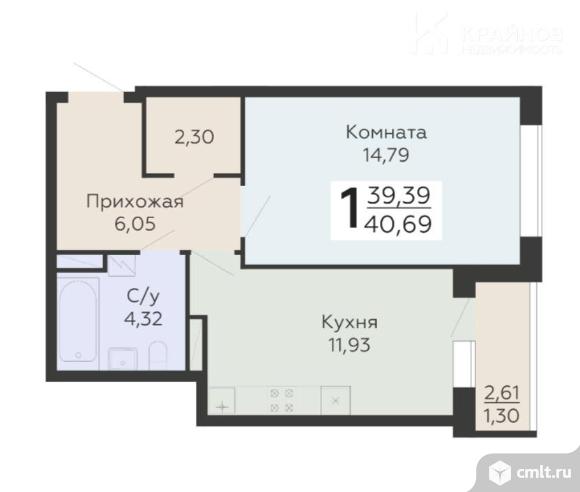 1-комнатная квартира 40,69 кв.м