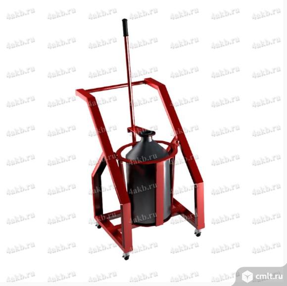 Разливатель кислоты на колесном ходу от производителя предназначен для безопасной перевозки бутылей с серной кислотой и электролитом для профилактических мероприятий по обслуживанию аккумуляторных батарей.