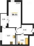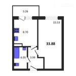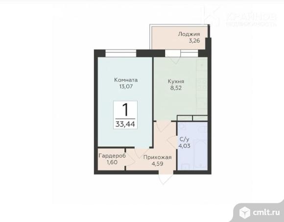 1-комнатная квартира 33,44 кв.м
