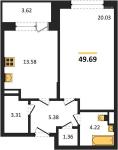 1-комнатная квартира 50,83 кв.м