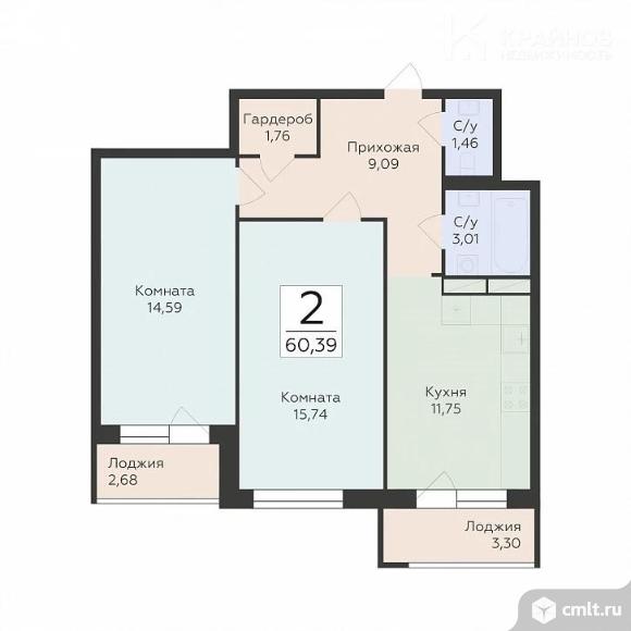 2-комнатная квартира 60,39 кв.м