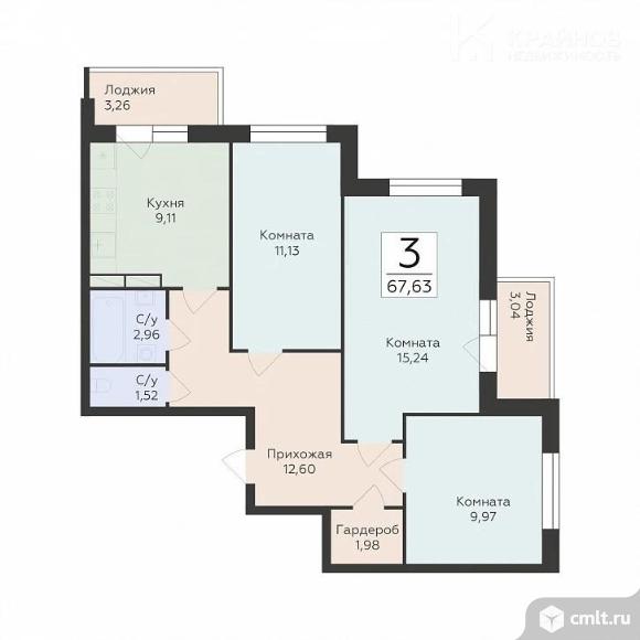 3-комнатная квартира 67,63 кв.м