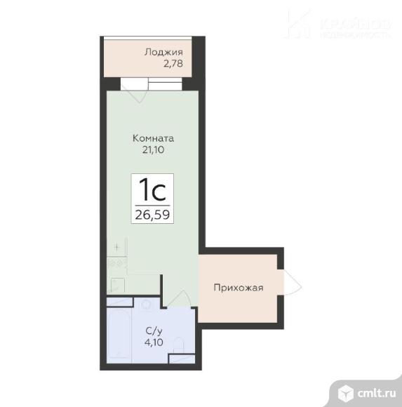 1-комнатная квартира 26,59 кв.м